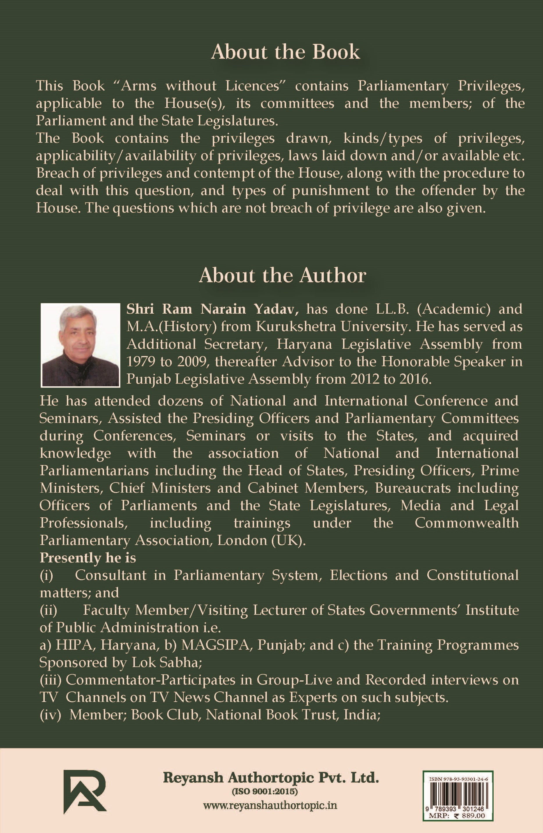 This Book “Arms without Licences” contains Parliamentary Privileges,